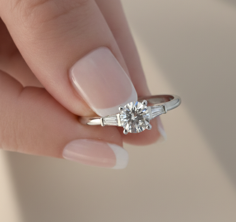 • Komerční standard (G–J): Tyto kameny jsou pro běžné oko stále bílé. V Moon Jewellery nejčastěji volíme barvu G, která ve šperku vypadá dokonale, ale je cenově dostupnější než investiční kategorie D.